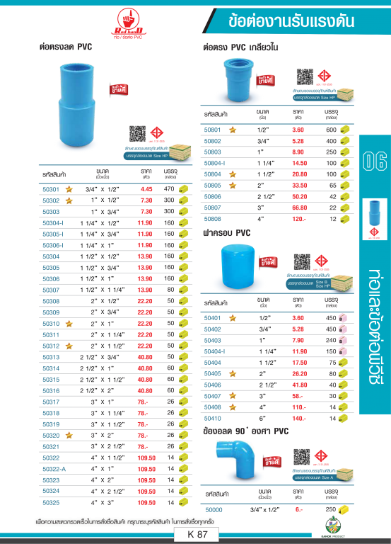 ข้องอ90องศาและฝาครอบ PVC งานรับแรงดัน รายละเอียดสินค้าตามภาพ