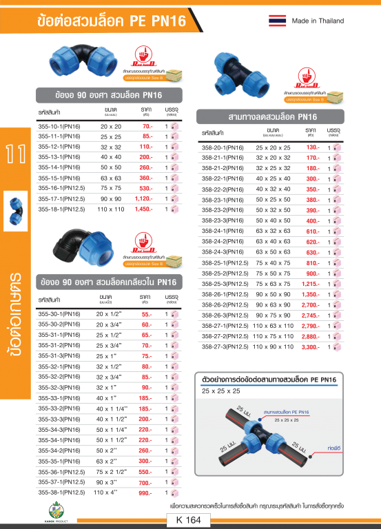 ข้อต่อสวมล็อก PE PN16 รายละเอียดสินค้าตามรูปภาพ