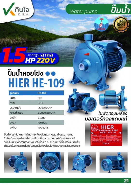 ปั๊มหอยโข่ง รุ่นหน้าใบพัดใหญ่ HE - 109