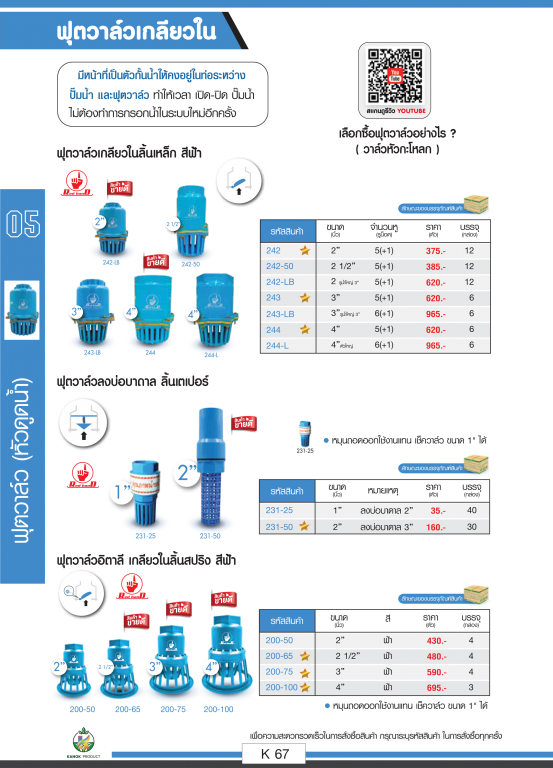 ฟุตวาล์วเกลียวใน สีฟ้า สินค้าตามภาพ