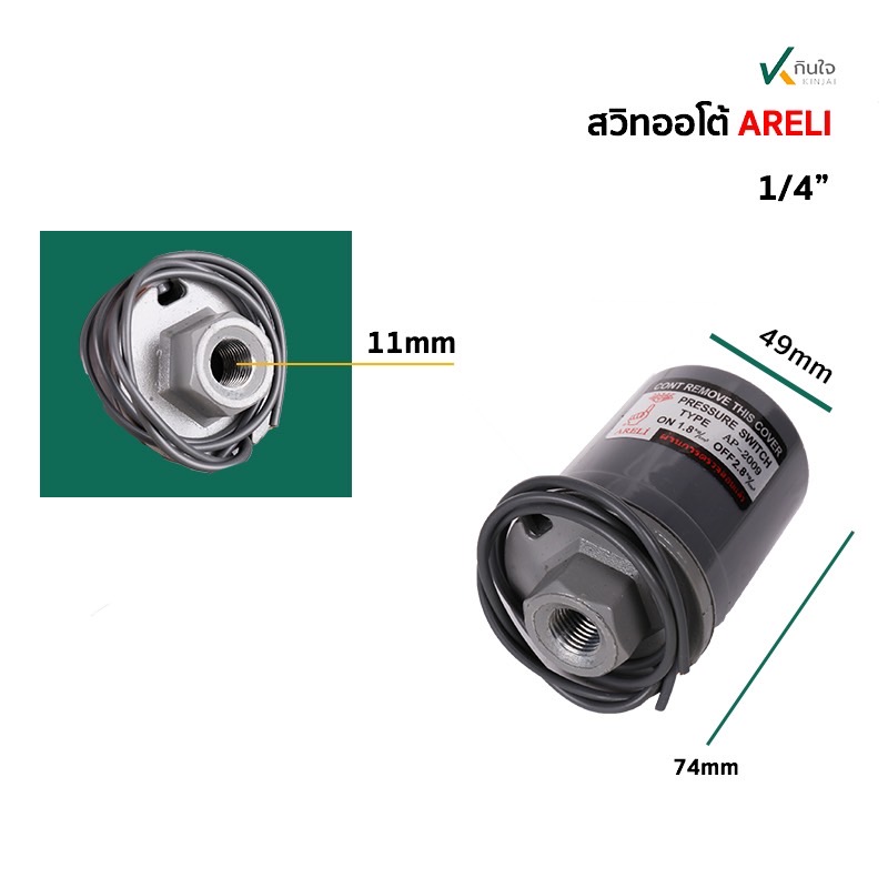 | Info | สวิทซ์ แรงดันปั๊มน้ำ แบบอัตโนมัติ แบบทองเหลืองคู่ ARELI รู 1/4 |