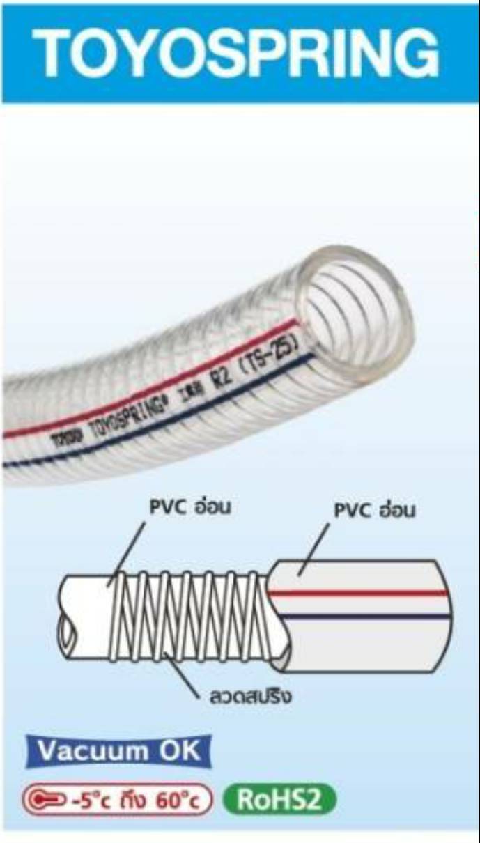TOYOSPRING Hose เป็นสายสปริงทนแรงดัน ใช้ในงานจ่ายแรงดันและงานสุญญากาศ (งานดูด) ผลิตจาก PVC อ่อน