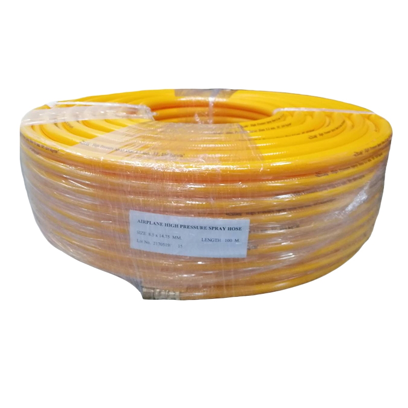 | Info | สายพ่นยา 100เมตร 5 ชั้นเต็ม ขนาด 8.5 MM. AIRBUS สีเหลือง 250 kg/cm เสริมใยเชือกถัก สายในลื่นน้ำยาไ |