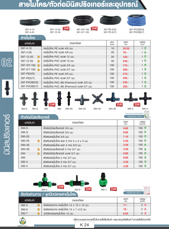 สายไมโคร/ตัวต่อมินิสปริงเกอร์และอุปกรณ์