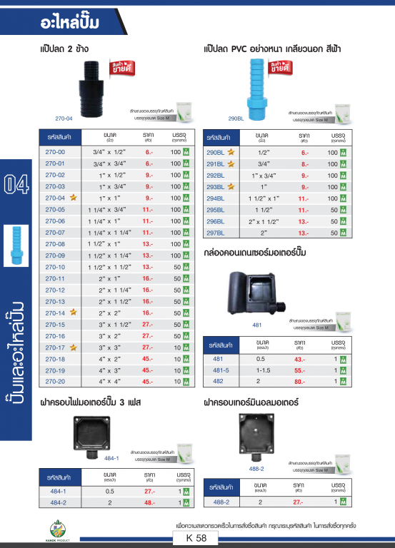 อะไหล่ปั๊มน้ำ สินค้าตามภาพ