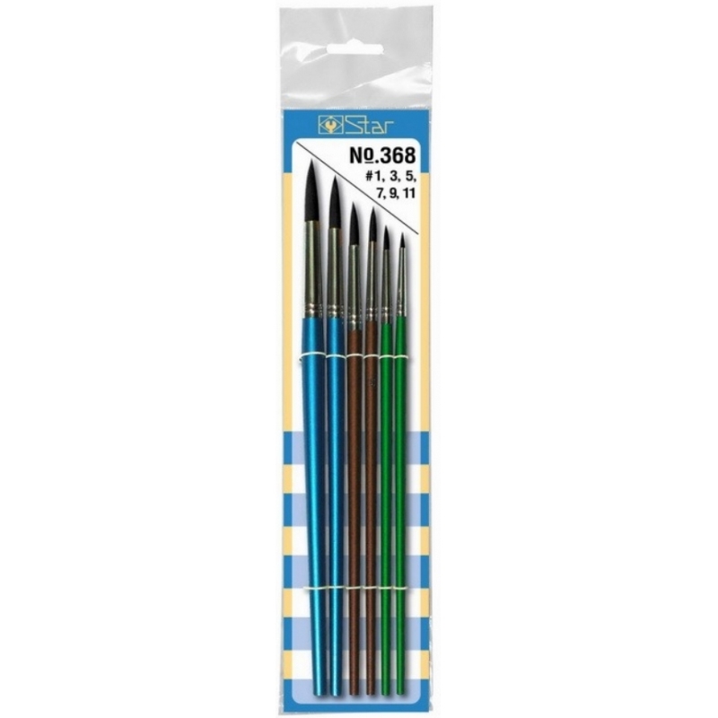 พู่กัน STAR ปากกลมขนดำ No.368 ขนาด 6 ตัวชุด #130400