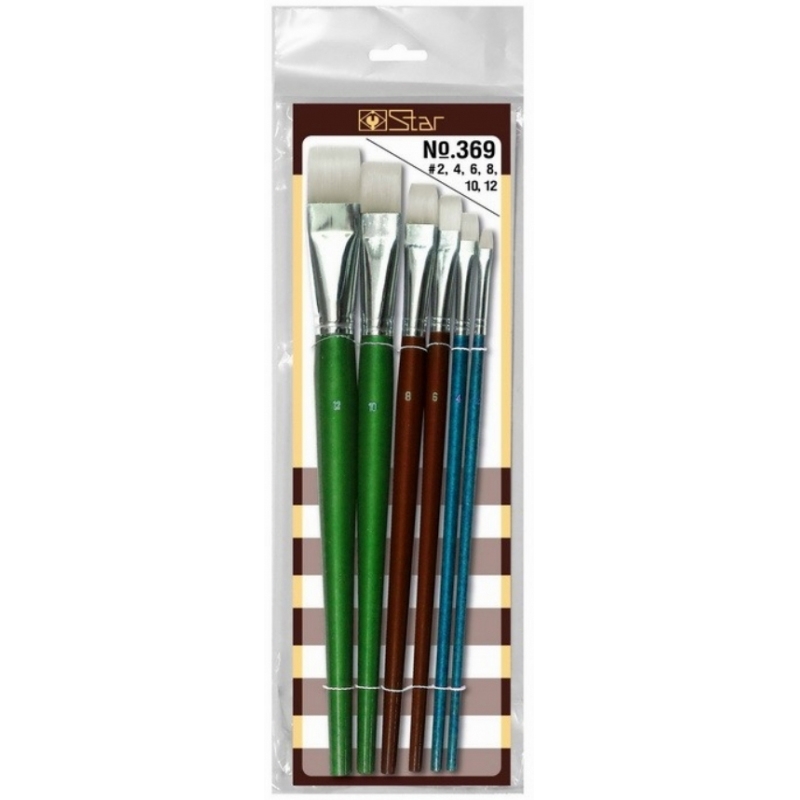 พู่กัน STAR ปากแบนขนขาว No.369 ขนาด 6 ตัวชุด #130410