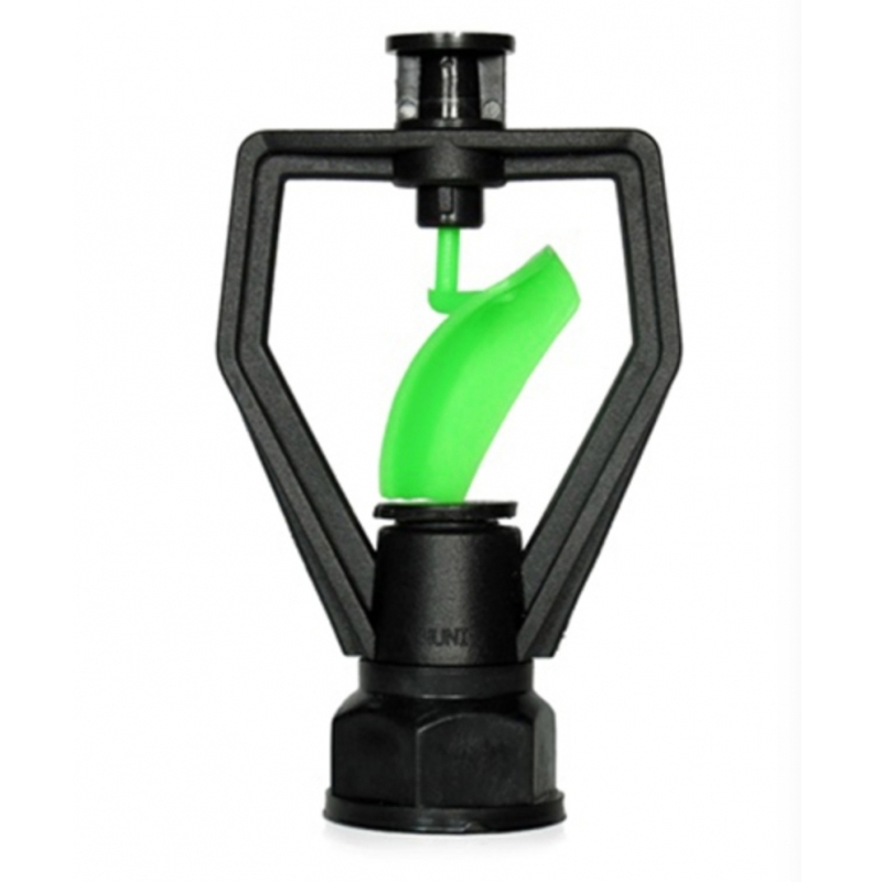 3/4" x 1/2" ให้น้ำปริมาณ 500-900 ลิตร ต่อชั่วโมง ครอบคลุมระยะ 3-5 เมตร สามารถทนแรงดันน้ำได้ 1-3 บาร์ เหมาะกับพืชสวนหรือไม้พุ่ม มีลัษณะเป็นเกลียวในรองรับข้อต่อ PVC เกลียวนอก ได้ทั้งขนาด 3/4" และ 1/2" โครงสปริงเกลอร์ หมุนรอบตัว ทำให้พืชได้รับน้ำทั่วถึง ใบมีลักษณะเรียวยาว ช่วยส่งแรงน้ำให้สูงขึ้น