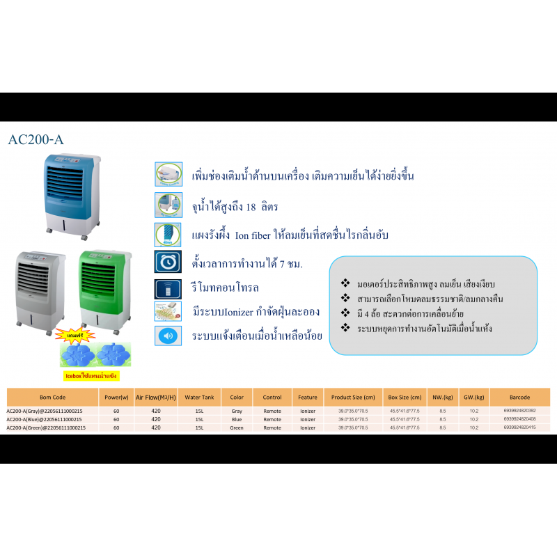 Category : HOME APPLINCES / เครื่องใช้ไฟฟ้า / พัดลมไอเย็น