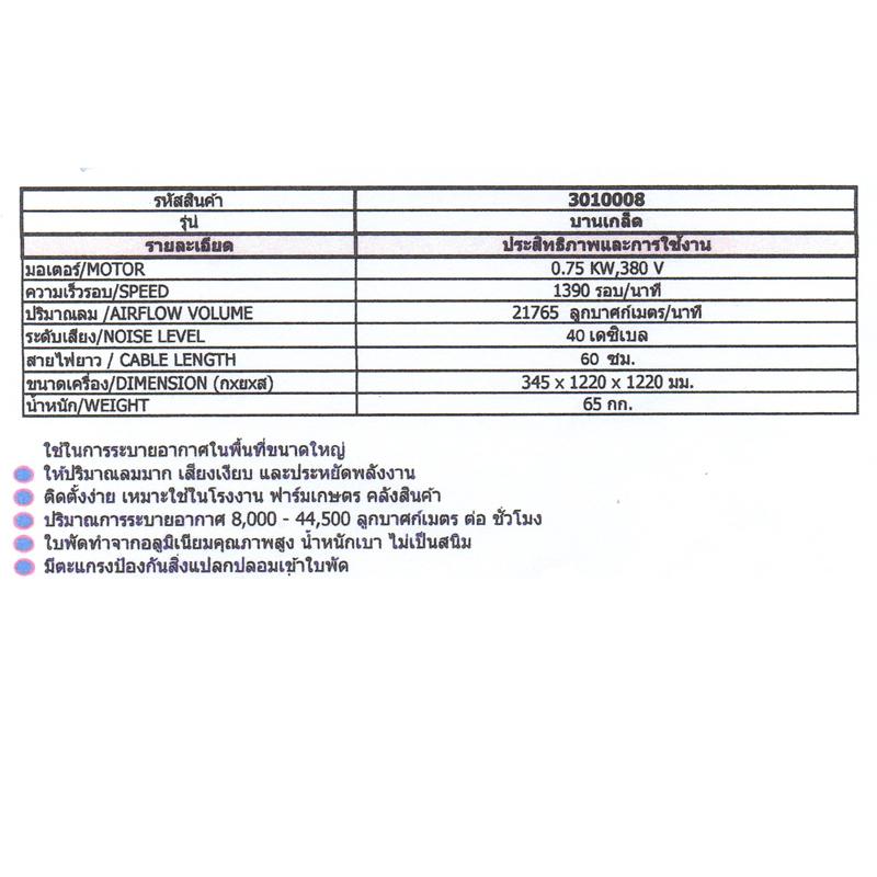 | Info | พัดลมฟาร์ม 42นิ้ว (รุ่นบานเกร็ด) |