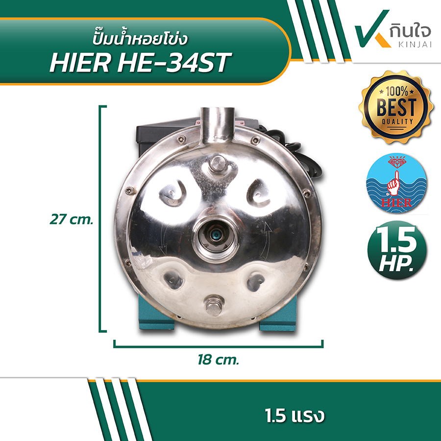 ปั๊มหอยโข่งแสตนเลส 1.1/4"x1"x1.5HP HIER รุ่นHE-34ST