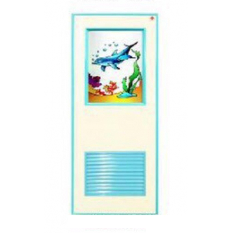 ชุดบานประตู PVC TOP รุ่น FANCY SMART รุ่นFS041 สีครีม ฟ้า ปลาโลมาคู่ บานเกร็ดล่าง ราคา ครบชุด มี3ขนา