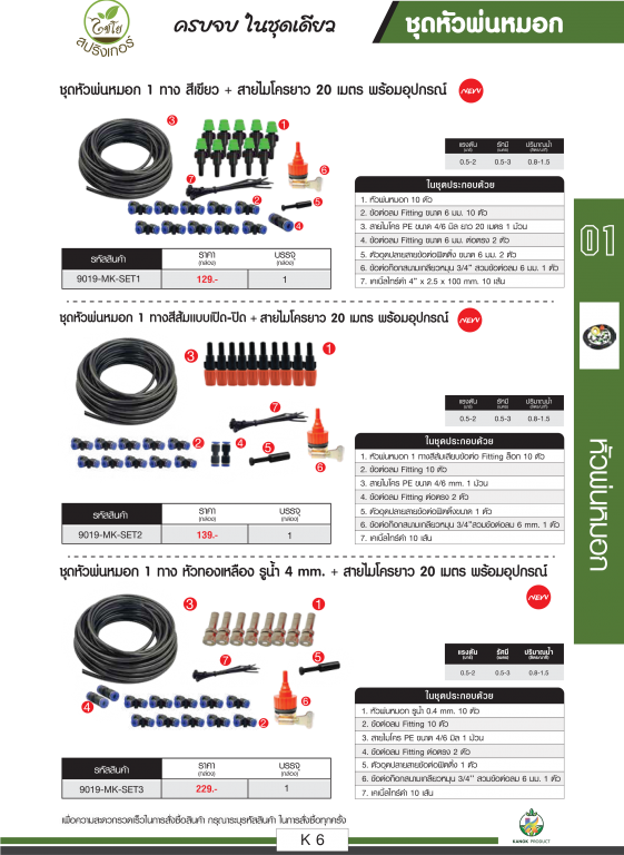 หมวดหมู่ : การเกษตรและงานสวน / ไชโยนิ้วเพรช / ชุดหัวพ่นหมอกและอะไหล่