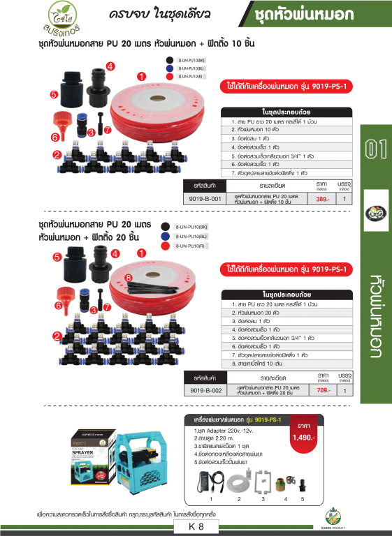 ชุดหัวพ่นหมอก ตราไชโยนิ้วเพรช ครบชุด