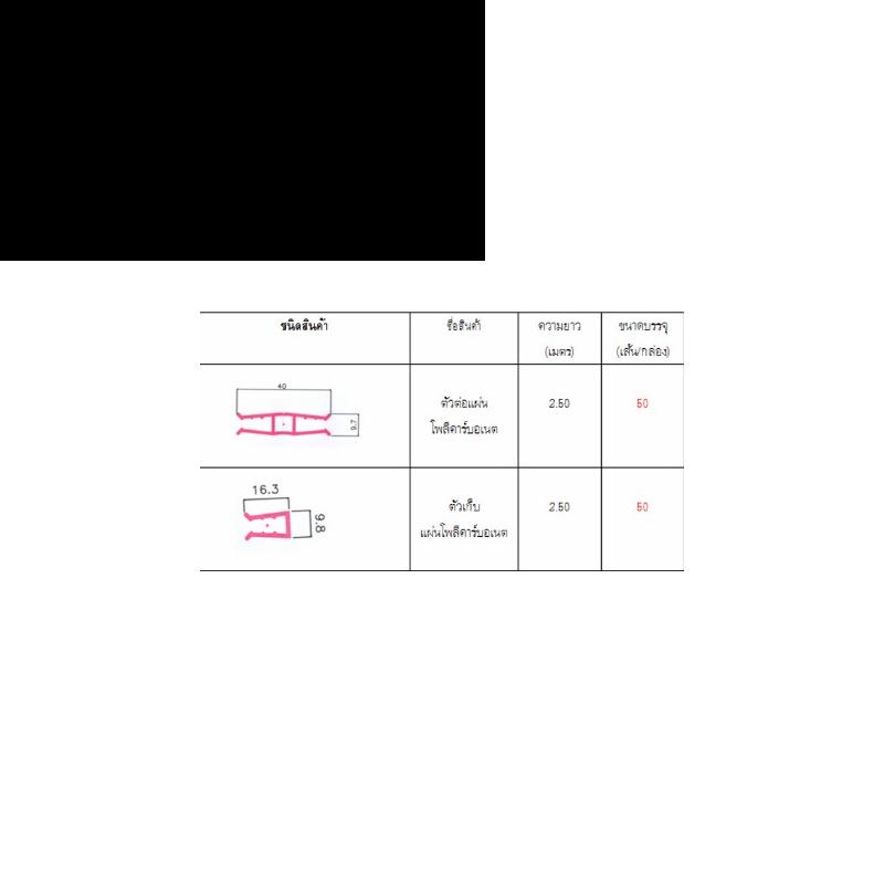 ตัวต่อแผ่นโพลีคาร์บอเนต ยาว 2.50 เมตร ราคาต่อ 50เส้น