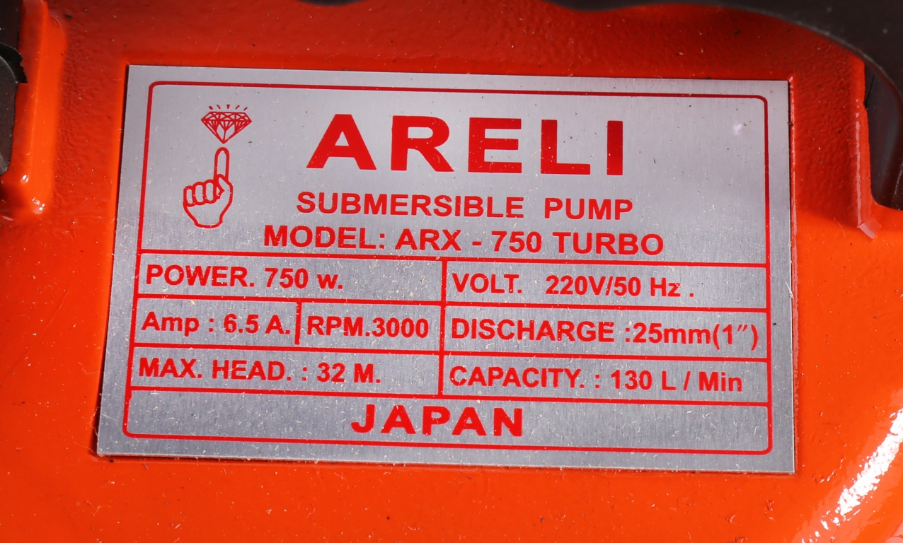 ปั๊มน้ำไดโว่ 1 นิ้ว ( รุ่นส่งสูง ) อะลูมิเนียม ยี่ห้อ ARELI รุ่น ARX-750 Turbo