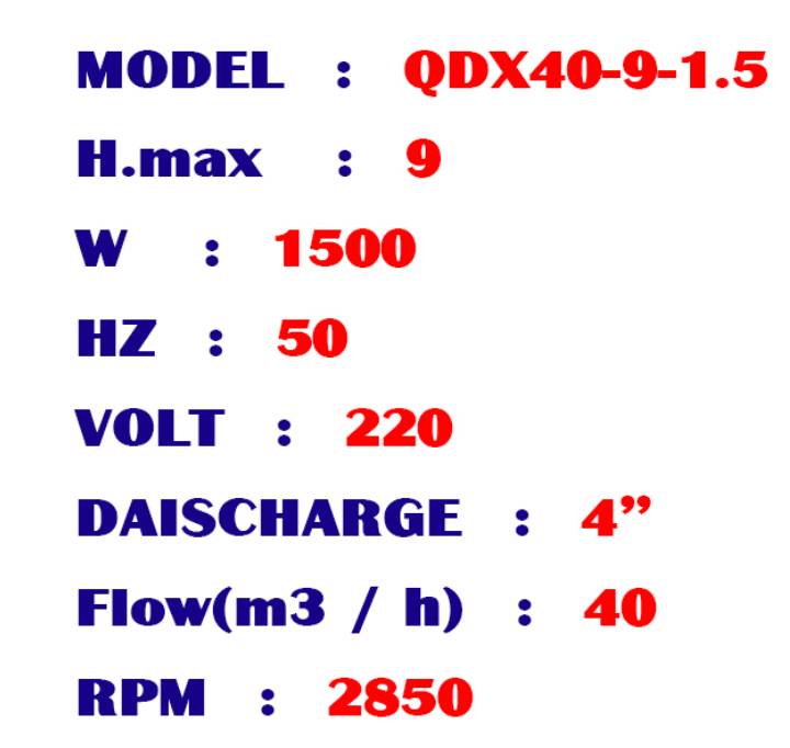 | ข้อมูล | ปั๊มแช่มิเนียม ขนาด 4 นิ้ว มอเตอร์ 1500 วัตต์ ยี่ห้อ ARELI |