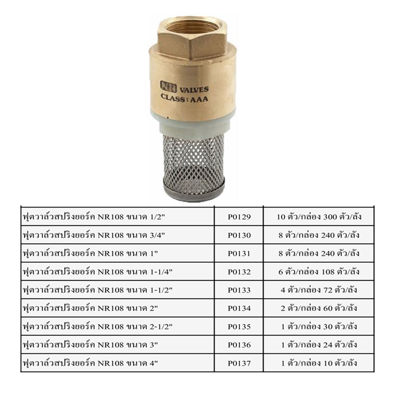 ฟุตวาล์วสปริงยอร์ค NR108 มีหลายขนาด ราคาขายต่อกล่อง สินค้าได้ตามรูป