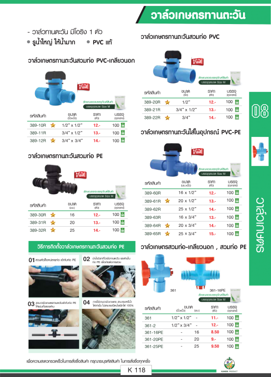 วาล์วเกษตรทานตะวัน ตราไชโยนิ้วเพรช รายละเอียดสินค้าตามภาพ