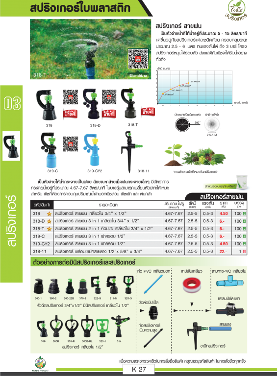 หมวดหมู่ : การเกษตรและงานสวน / ไชโยนิ้วเพรช / สปริงเกอร์และอุปกรณ์