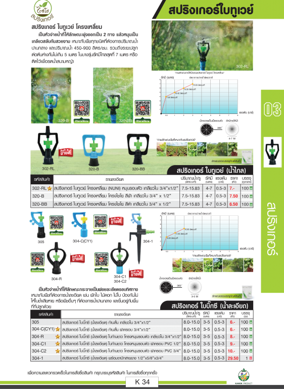 หมวดหมู่ : การเกษตรและงานสวน / ไชโยนิ้วเพรช / สปริงเกอร์และอุปกรณ์