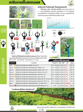 หมวดหมู่ : การเกษตรและงานสวน / ไชโยนิ้วเพรช / สปริงเกอร์และอุปกรณ์