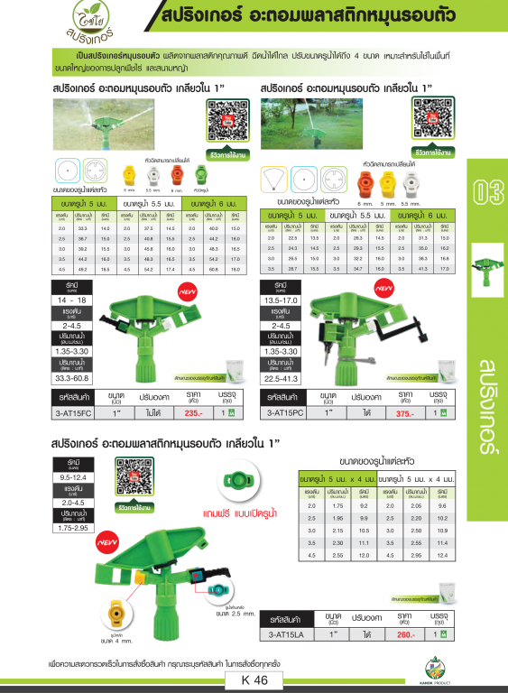 หมวดหมู่ : การเกษตรและงานสวน / ไชโยนิ้วเพรช / สปริงเกอร์และอุปกรณ์