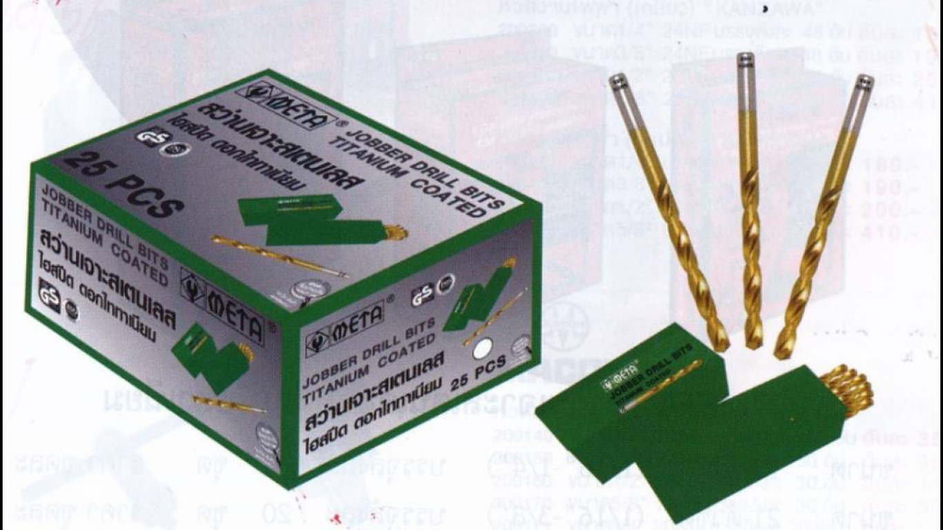 | สว่านเจาะเหล็ก สีไททาเนียม META 5/32” | 10 | อัน | 210 |