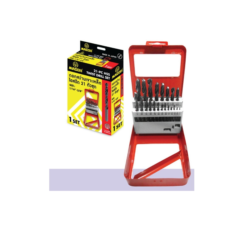 สว่านเจาะเหล็ก MACOH 21 ตัวชุด  (หุน) ขนาด 1/16"-3/8"  #191280