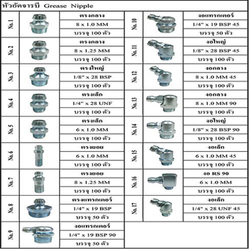| หัวอัดจารบี # 4 [ตรงเล็ก 1/4" x 28 UNF] | 100 | ตัว | 501 |