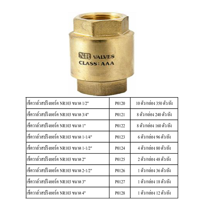 เช็ควาล์วสปริงยอร์ค NR103 มีหลายขนาดให้เลือก ราคาขายต่อกล่อง สินค้าได้ตามรูป