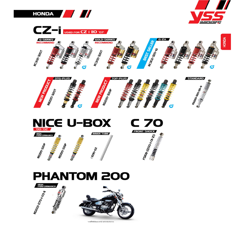 หมวดหมู่ : มอเตอร์ไซค์-รถยนต์ / โช๊คมอเตอร์ไซค์ YSS / HONDA