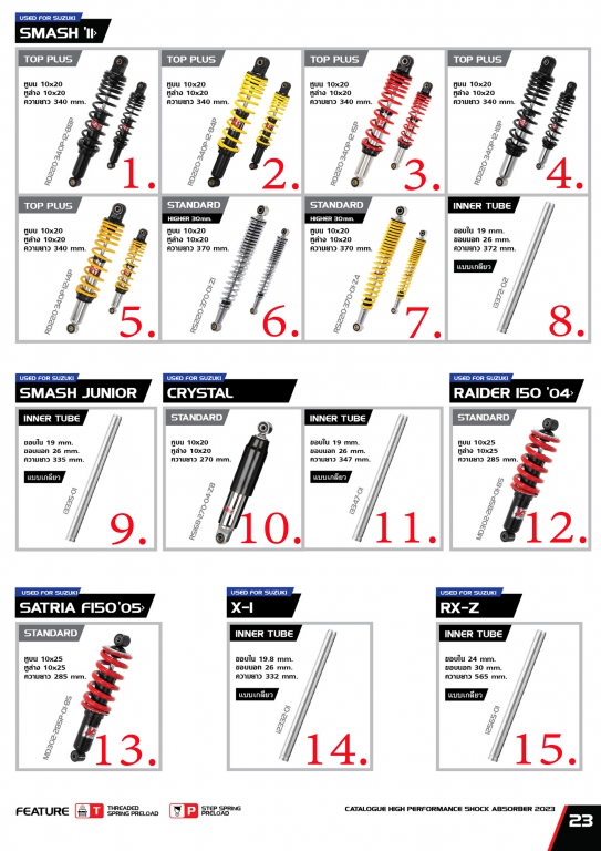 โช๊ค YSS USED FOR SUZUKI SMASH 11/ SMASH JUNION/ CRYSTAL/ RADER 150 04/ SATRIA FISO 05/ X-4/ RX-Z