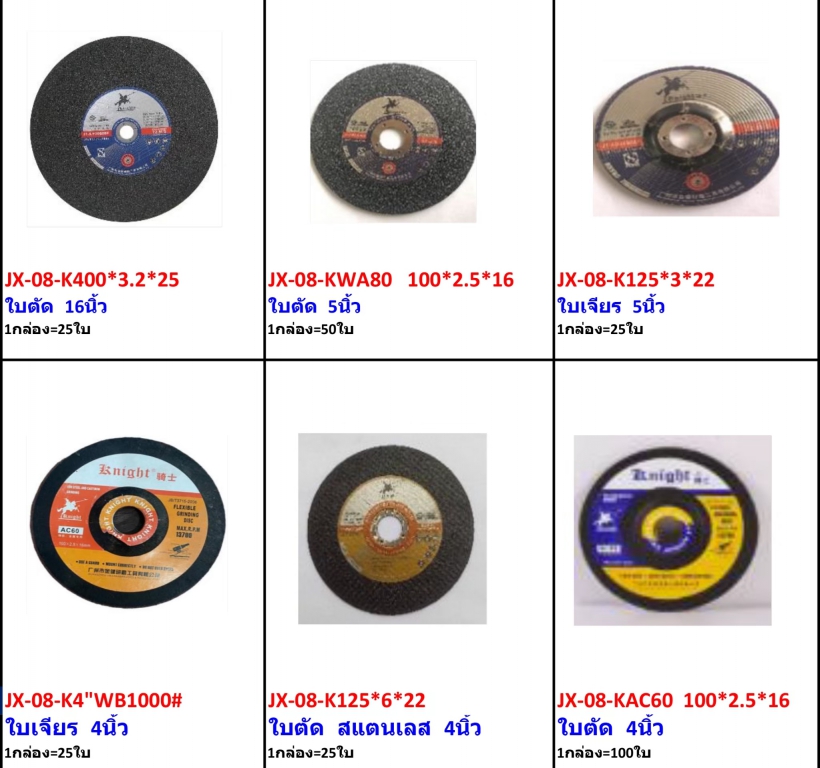 ใบตัดกระจกและใบเจียร ราคาต่อ 1 กล่อง รายละเอียดตามภาพ