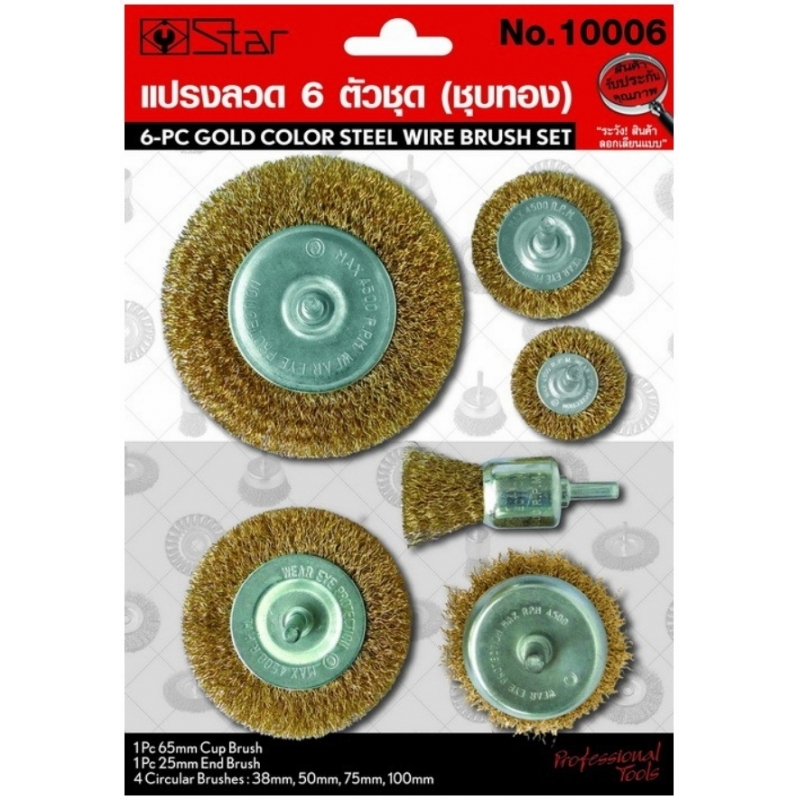 แปรงลวด 6 ตช.(ชุบทอง) STAR No.10006 #113600 แปลงลวดกลม ขนาด 38 mm ,50 mm ,75 mm ,100 mm แปรงลวดถ้วย ขนาด 65 mm แปรง End Brush 25 mm