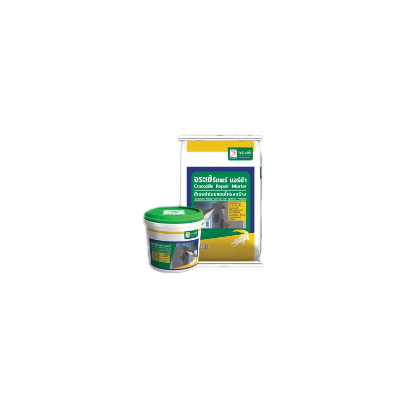 จระเข้ รีแพร์มอร์ต้า Crocodile Repair Mortar ซีเมนต์ซ่อมแซมโครงสร้าง ใช้ซ่อมงานโครงสร้างได้ เช่น เสา พื้น ผนัง คาน ซ่อมแซมได้ที่ความหนา 3-40 มม. ยึดเกาะดีใช้ได้ทั้งแนวราบ และงานเหนือศีรษะ รับแรงอัดได้สูงกว่า 500 ksc ร่องขนาด 1×1 ซม. ได้ 5 ม./กก.