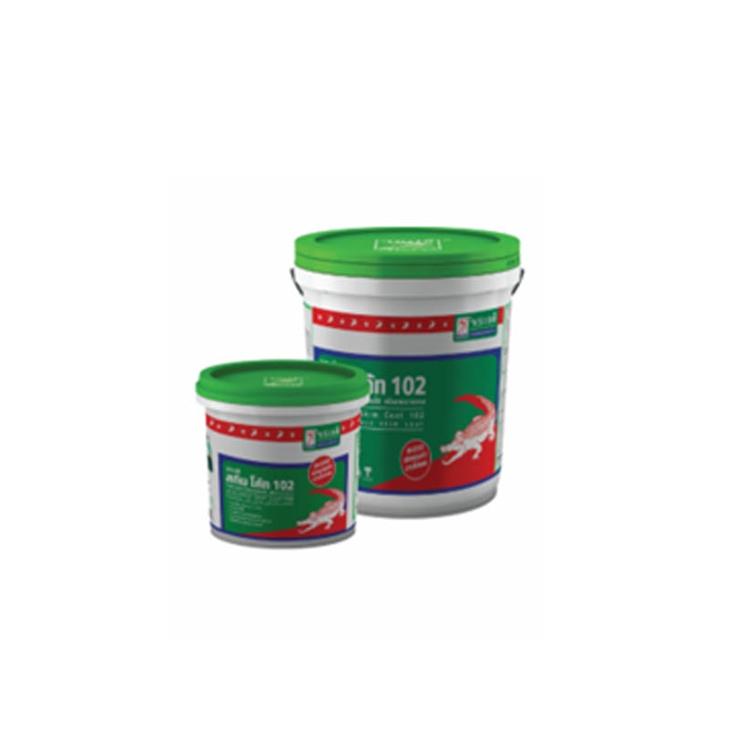 จระเข้ สกิมโค้ท 102 โพลีเมอร์ สำเร็จรูปพร้อมใช้ สำหรับงานฉาบบาง สำหรับงานแต่งผิวผนัง ฉาบได้บาง 0.2-5 มม. ฉาบทับสีรองพื้น หรือสีจริงได้ ขัดแต่งได้ง่าย ไม่เป็นฝุ่น แรงยึดเกาะสูง ทนทานต่อสภาวะอากาศ แสงแดด ฝน ปล่อยเปลือย หรือทาสีทับได้ ใช้ได้ทั้งภายนอก ภายใน ผสมสีโดยเครื่องผสมได้ กรณีต้องการฉาบสี 1-1.5 กก. / ตร.ม. (หนา 1 มม.