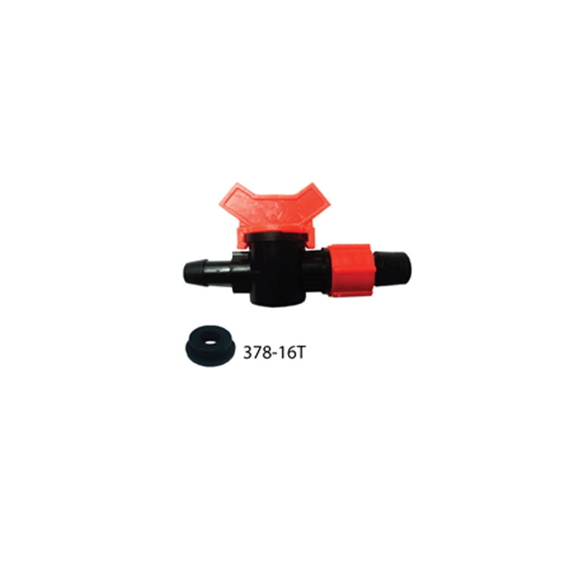 (387-141T) วาล์วเกษตรเทปน้ำหยด แบบแบน - ข้อต่อเปอร์เมท 16.5 x 16 mm.(มือบิดสีส้ม)