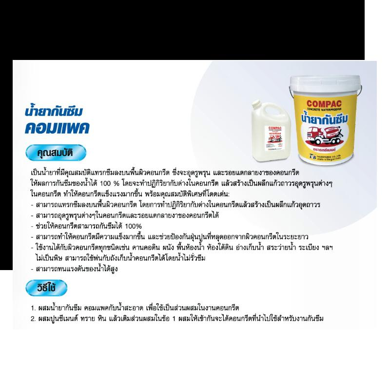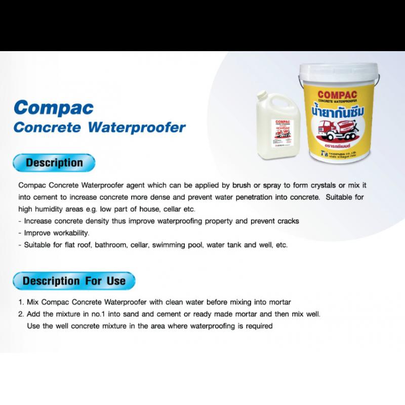 เป็นน้ำยาที่มีคุณสมบัติแทรกซึมลงบนพื้นผิวคอนกรีต ซึ่งจะอุตรูพรุน และรอยแตกลายงาของคอนกรีต ให้ผลการกันซึมของน้ำได้ 100% โดยจะทำปฏิกริยากับด่างในคอนกรีต แล้วสร้างเป็นผลึกแก้วถาวรอุตรูพรุนต่างๆ ในคอนกรีต ทำให้คอนกรีตแข็งแรงมากขึ้น