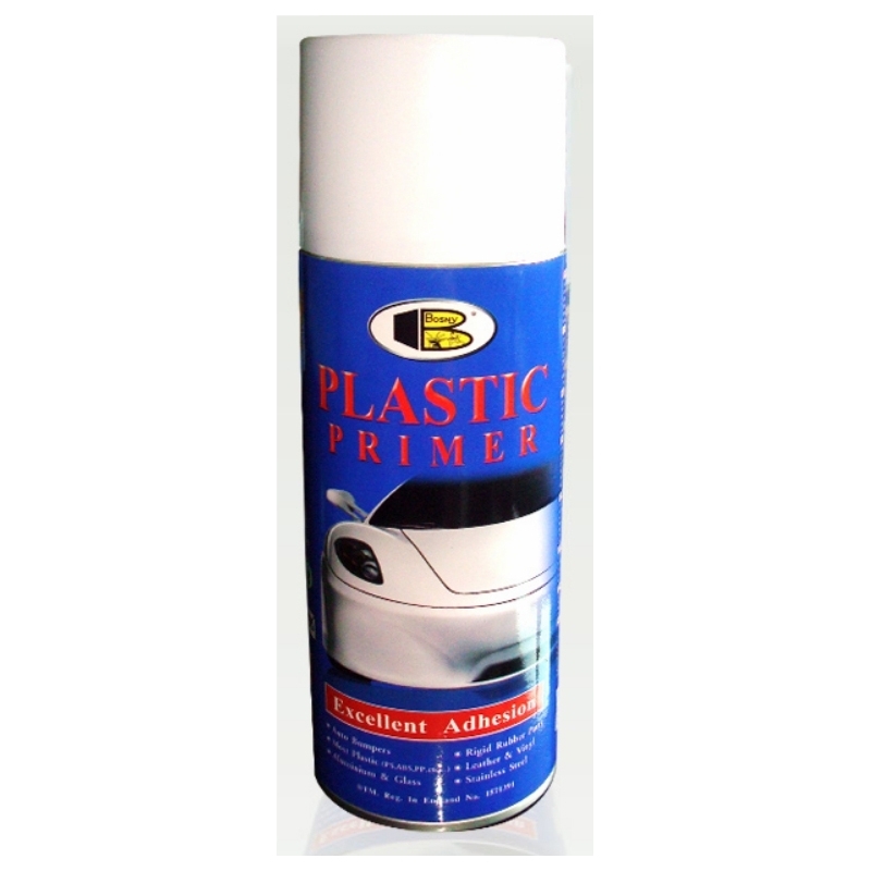 เป็นสเปรย์พิเศษเพื่อเพิ่มการยึดเกาะของสีทับหน้าบนชิ้นงานพลาสติก เช่น กันชนพลาสติก, สปอยเลอร์รถยนต์, ไฟเบอร์กลาส, ฝาครอบล้อ, กระจกข้าง, เครื่องใช้ไฟฟ้า, รถยนต์, มอเตอร์ไซด์, ชิ้นงานโลหะ, อลูมิเนียม, หนังแท้, หนังเทียม และงานพลาสติกอื่น ๆ ประเภทเอบีเอส, พีเอส, โพลีโพไพลีน โพลีเอ็ททีลีน ฯลฯ เฉดสี วิธีใช้ : ขัดพื้นผิววัตถุที่จะพ่นให้เรียบร้อยแล้วทำความสะอาดให้ปราศจากคราบน้ำมัน เขย่าให้ดีก่อนใช้ พ่นห่างจากวัตถุประมาณ 1 ฟุต พ่นบางๆ ทิ้งไว้ 2-3 นาที แล้วจึงพ่นทับอีก1 ครั้ง หมายเหตุ : ควรพ่นสเปรย์รองพื้นพลาสติก "บอสนี่" แล้วทิ้งให้แห้ง 10 นาทีแล้วจึงพ่นสีจริงทับหน้าเพื่อความสวยงาม หากทิ้งไว้นานเกิน 30 นาที ควรพ่นสเปรย์รองพื้นพลาสติก "บอสนี่" ใหม่อีก 1 ครั้ง มิฉะนั้นจะทำให้สี ทับหน้ายึดเกาะได้ไม่ดีเท่าที่ควร สามารถพ่นทับหน้าได้ด้วยสีทุกชนิดตามต้องการ