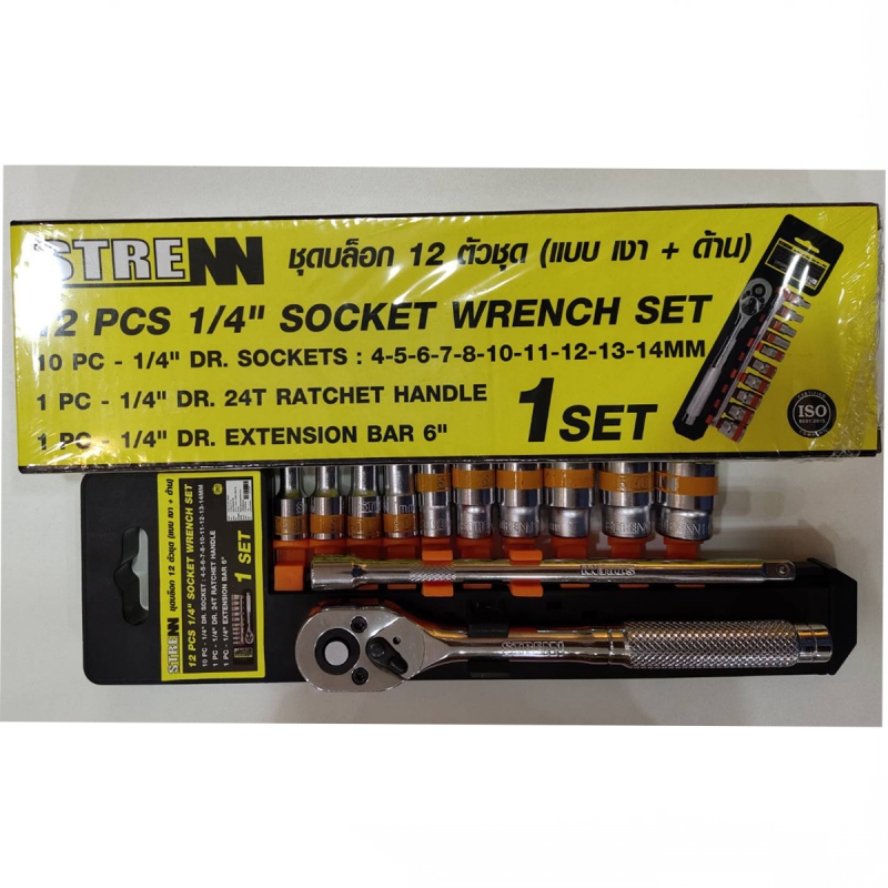 ชุดบล็อก STRENN 12ตัวชุด (แบบ เงา+ด้าน) 12PCS 1/4
