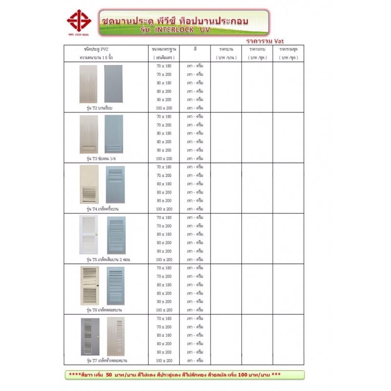 ชุดบานประตู PVC ท็อปบานประกอบ รุ่น INTERLoCK UV หนา 1.5 รุ่นT2 บานเรียบ