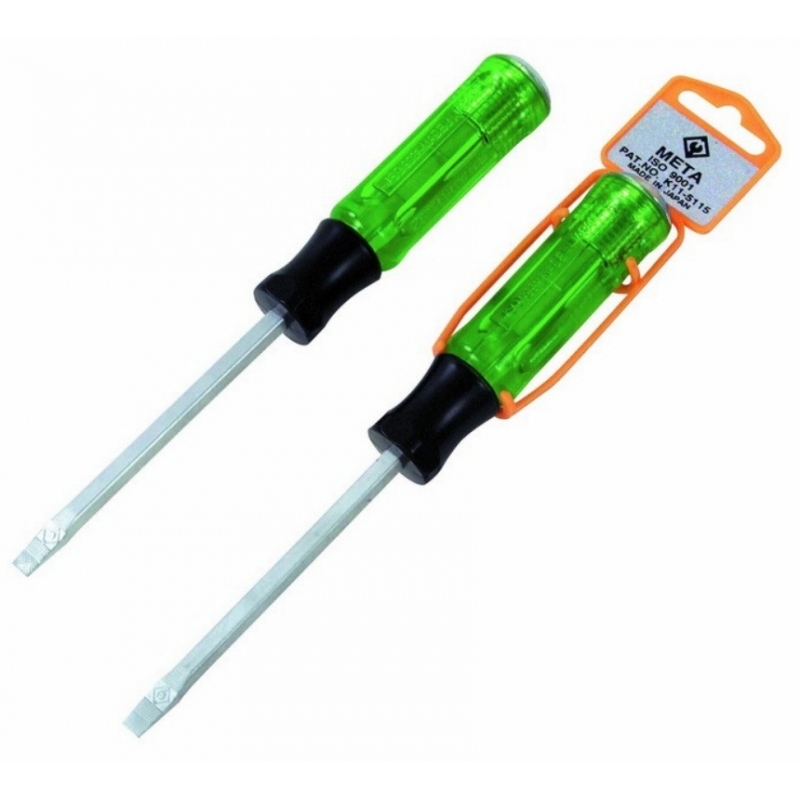 ไขควงหัวทะลุด้ามเขียว META ชุบสติม #020455